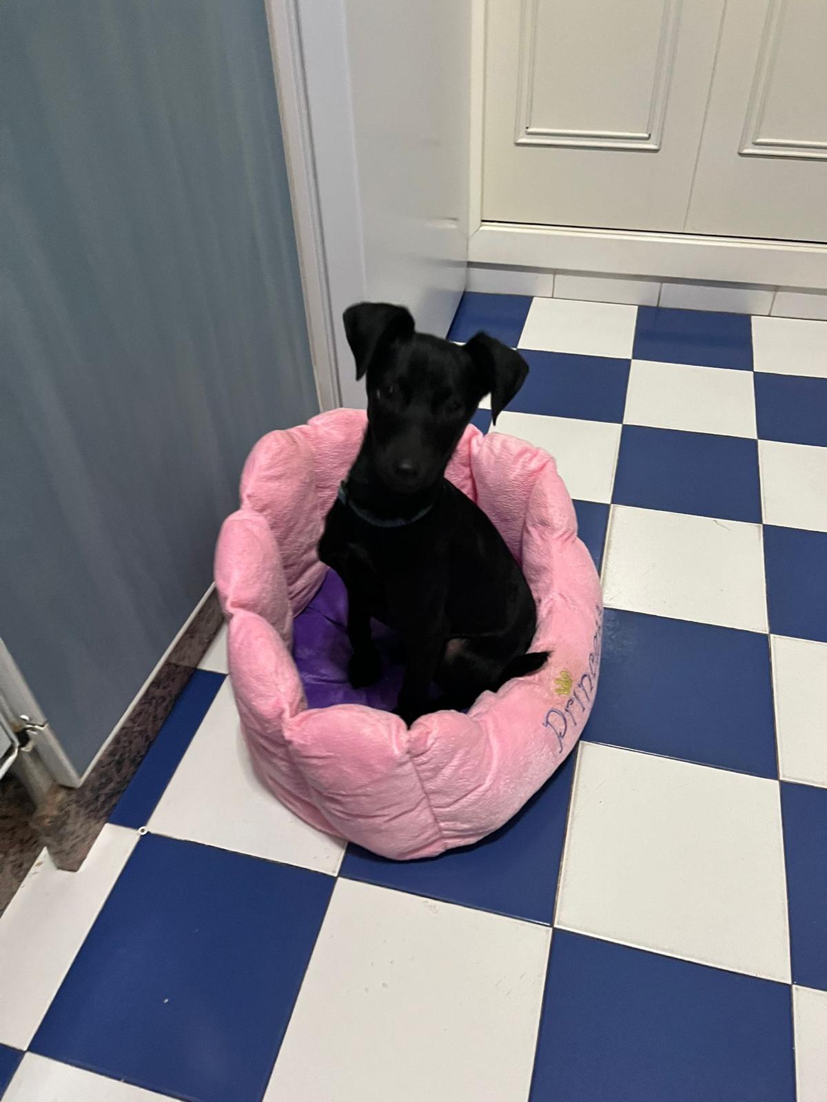 Haar moeder is slechts 35 cm hoog, Blume zal wel iets groter worden, ze staat iets hoger op de poten. Uiteraard moet ze nog veel leren. Dat betekent dat haar nieuwe familie rekening moet houden met de investering van tijd, geduld en vooral veel rust en regelmaat.