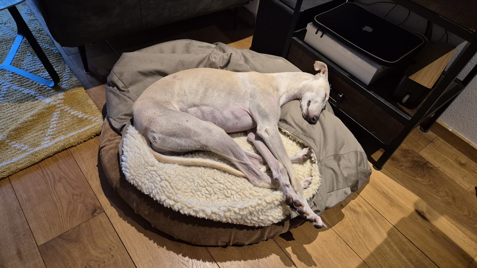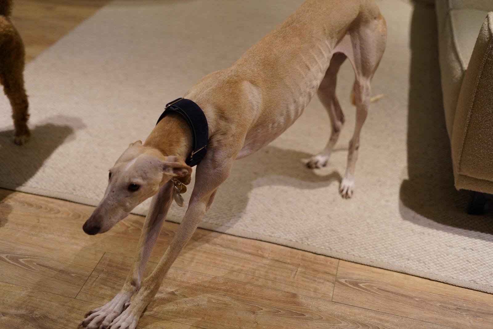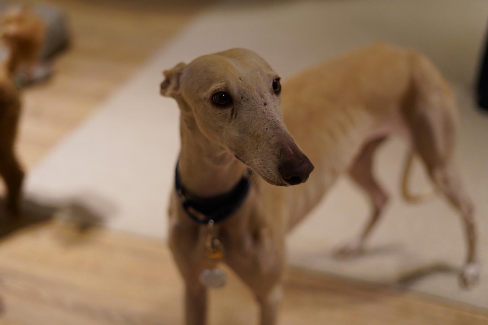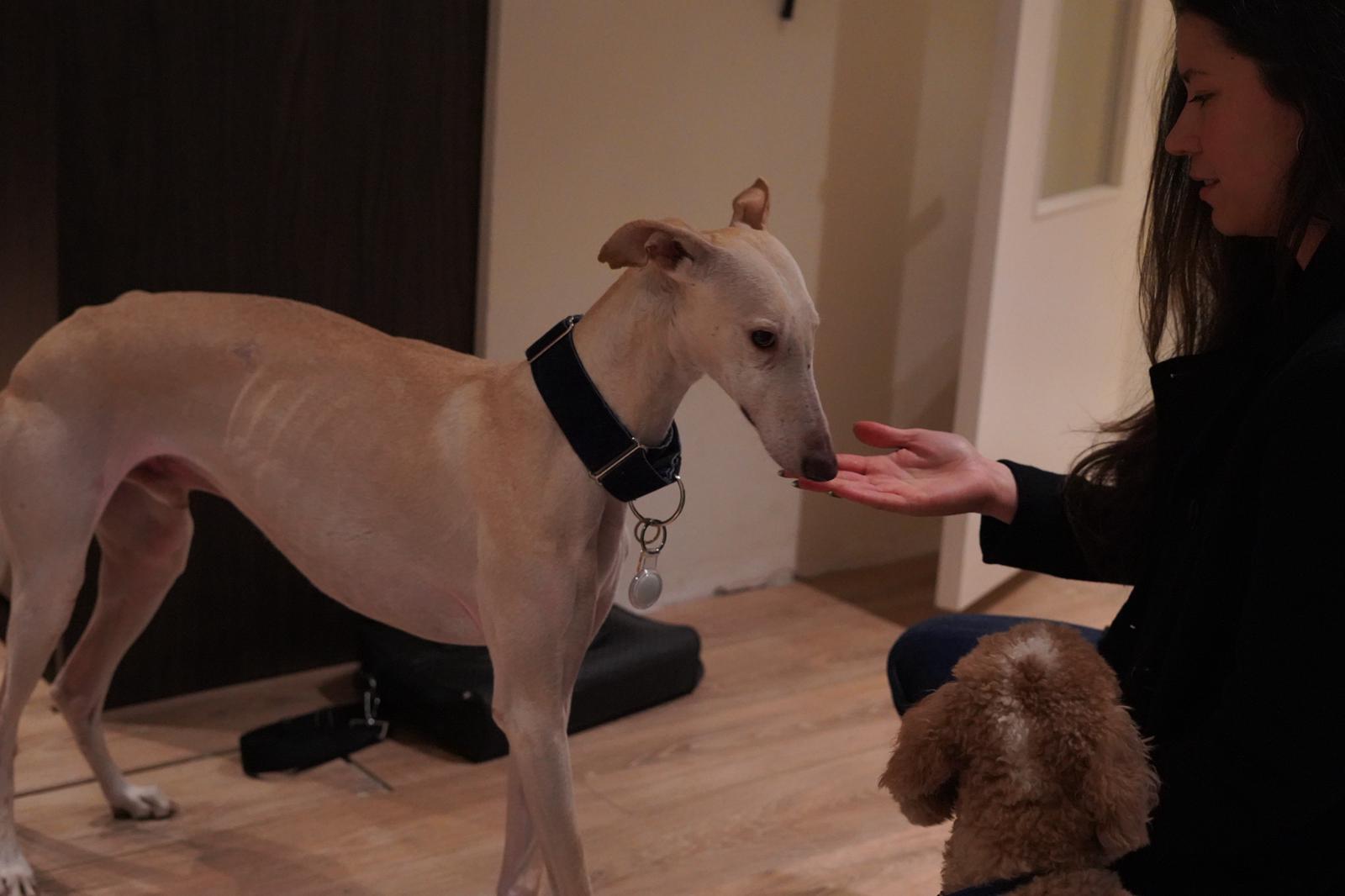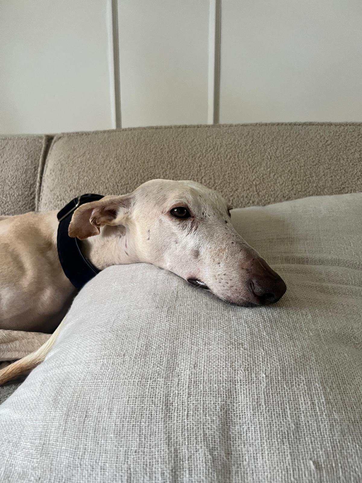Borjita is eigenlijk nog een jonge hond in zijn gedrag, een enthousiaste, lichtvoetige galgo die nog moet leren hoe de wereld werkt. Hij reageert spontaan op alles wat interessant is. Niet per se uit jachtinstinct, maar meer uit puur enthousiasme en onbevangenheid. En dat is precies waarom hij een eigenaar nodig met galgo ervaring heeft die hem structuur, begeleiding en een goede basis kan geven.