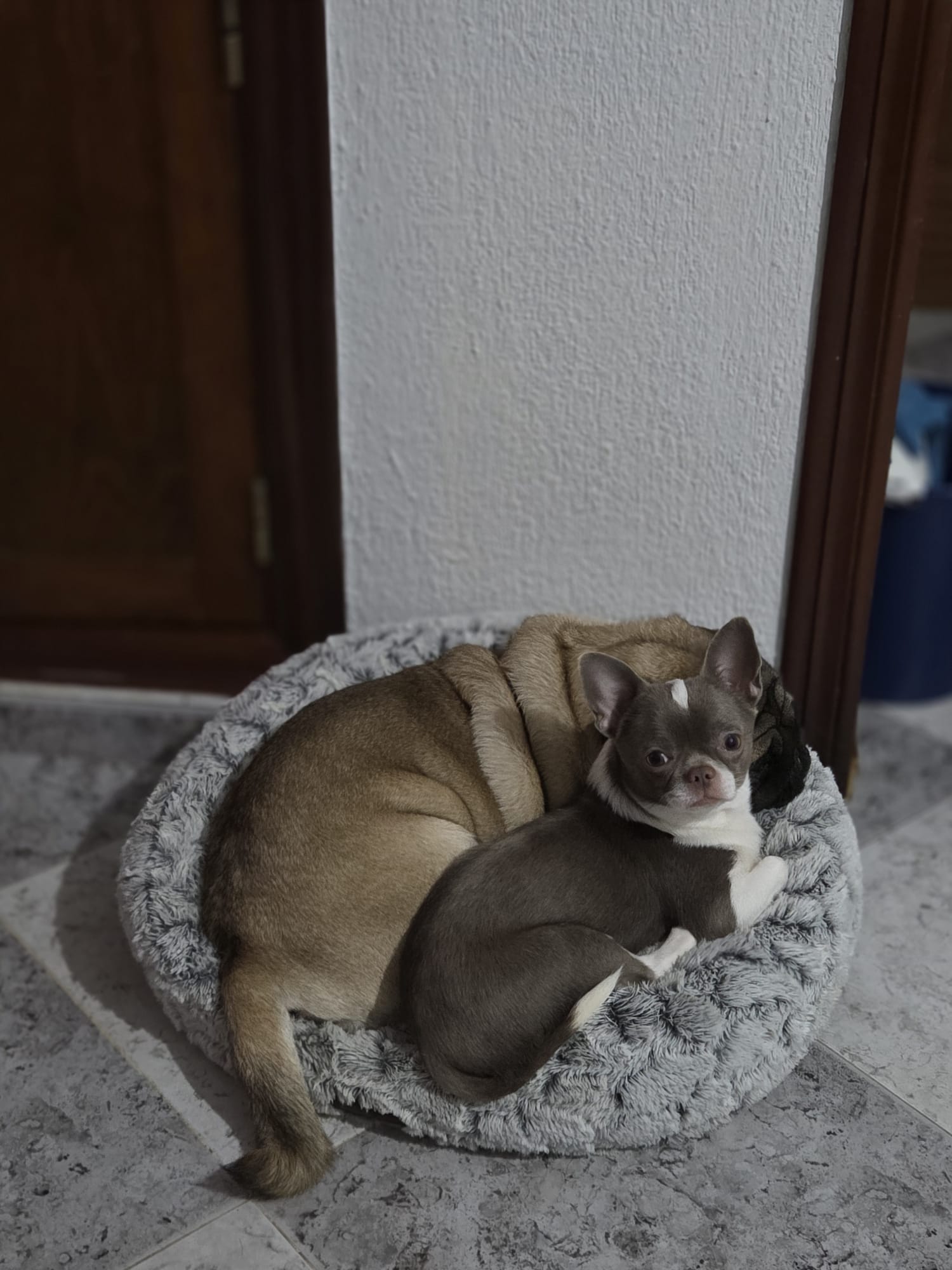 Frank en Dino zijn méér dan twee hondjes. Ze zijn elkaars houvast. Elkaars veiligheid. Elkaars familie. Hun band is intens en ontroerend, ze zoeken elkaar op, steunen elkaar en vinden troost bij elkaar. Daarom zoeken wij met volle overtuiging een gezamenlijke adoptie. Voor hun emotionele welzijn zou het fijn zijn dat ze samenblijven. Ook al weten we dat dit lastig zal zijn.