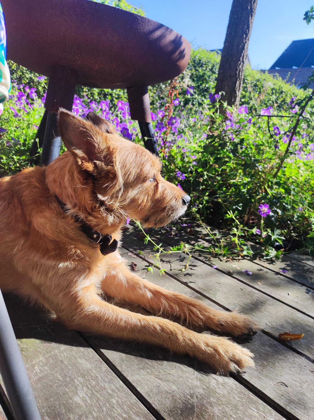 Gaston is bij ons in opvang en na een paar dagen wennen, zien we een lieve, gezellige, vrolijke, speelse hond! We bieden hem veel structuur en duidelijkheid en hier doet hij het heel goed op. Lekker veel wandelen, kluifjes, spelen, maar ook rust op zijn tijd. We hebben hem in het begin apart laten eten en slapen, maar dat hoefde na een paar dagen al niet meer.