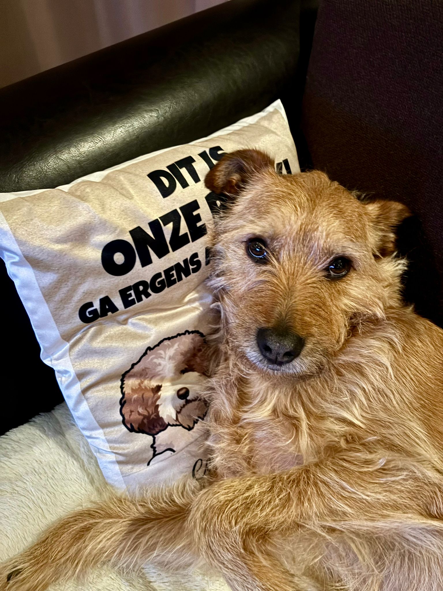 Gaston is zindelijk, hij heeft niet één ongelukje gehad in huis. Als we naar buiten gaan om te wandelen vindt hij het tuig om doen spannend, maar met rust, geduld en kriebels kunnen we hem goed afleiden en het tuigje om doen. Buiten loopt hij goed mee, wel is hij alert op geluiden en bewegingen. Hij is slim en leergierig.