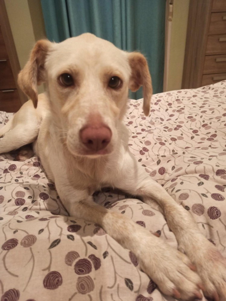 Javito is een jonge hond en al twee keer in de steek gelaten. Daarnaast is hij vorig jaar in Spanje geadopteerd en helaas is de adoptie niet geslaagd. De andere hond in het gezin heeft hem uiteindelijk niet geaccepteerd. Nu is hij weer terug bij de vrijwilligers van Pam.