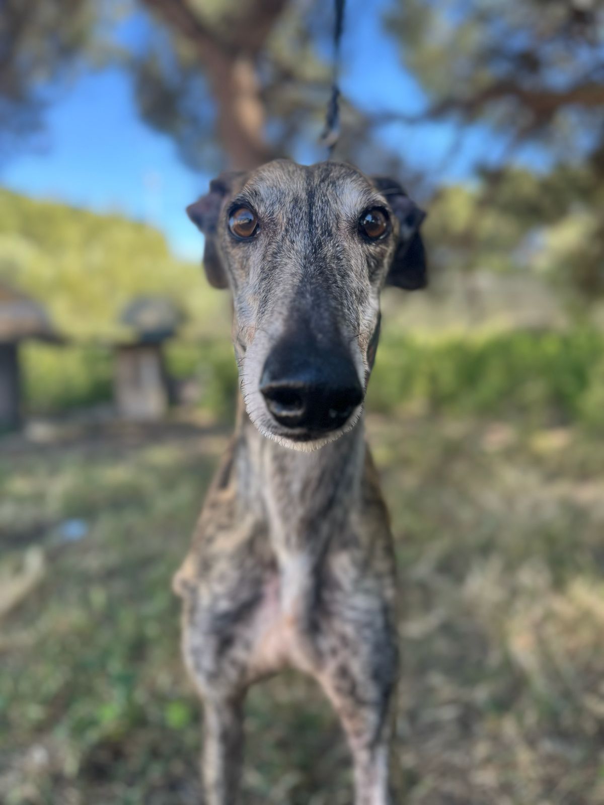 Gelukkig kwamen ze terecht bij Puntanimals. Nu zijn ze droog, warm en veilig. En deze prachtige brindle galgo laat zien wat veerkracht betekent.