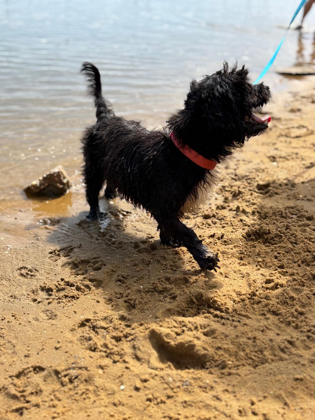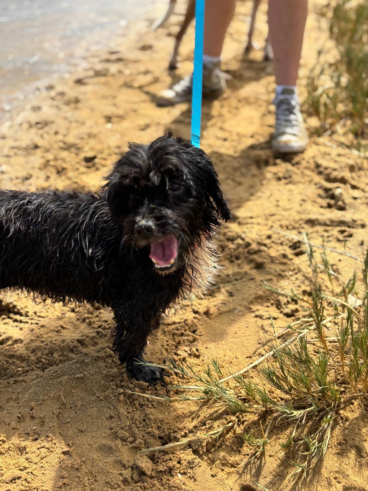 Kleine Manuela! Gevonden met een pupje van haar en opgevangen in de shelter van Puntanimals. Hier mocht ze uiteindelijk een tijdje logeren bij de eigenaresse van de shelter. Maar nu is ze weer terug en verblijft ze inmiddels al ongeveer een jaar in de shelter. Wat een superleuk hondje is Manuela. Niet een hondje voor een beginner overigens, want ze staat haar mannetje bij de andere honden. We hebben tijdens ons werkbezoek in september 2025 met haar gelopen en gezwommen. Want dat kan ze als de beste. Een echte waterrat. Als de eerste stress en energie eruit is tijdens de wandeling loopt ze gezellig mee maar laat ze ook wel een grommetje horen naar andere honden als iets haar niet zint. We plaatsen haar daarom niet bij kleine kinderen. Dus wie heeft er wat ervaring met kleine pittige hondjes en valt voor dit lekkere ding!?