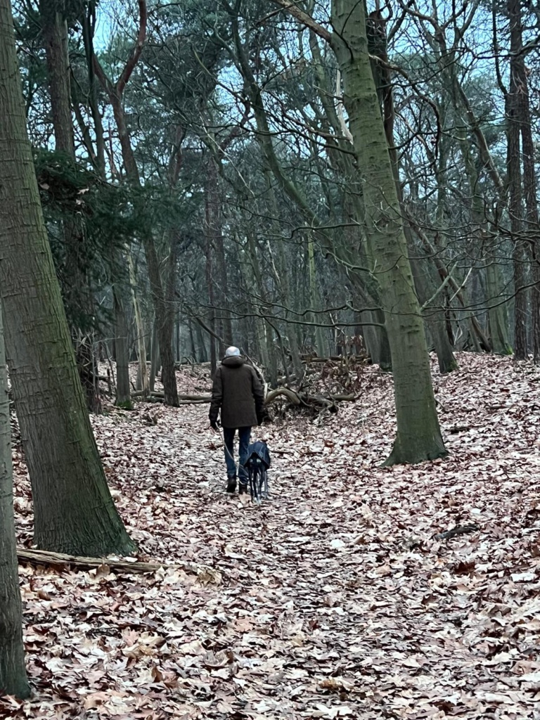 Ze wandelen inmiddels richting bos. Ze durft zelfs al naast hem te lopen. Nog niet de hele weg maar wel hele lange stukken. Want haar intuïtie zegt dat Hij haar nooit zal schoppen. En daar vertrouwt ze op. Regelmatig kijkt ze naar hem omhoog. En Hij kijkt regelmatig naar beneden naar haar. “Fijn hè Cubana, elke ochtend lekker wandelen !” Hij aait haar hals.