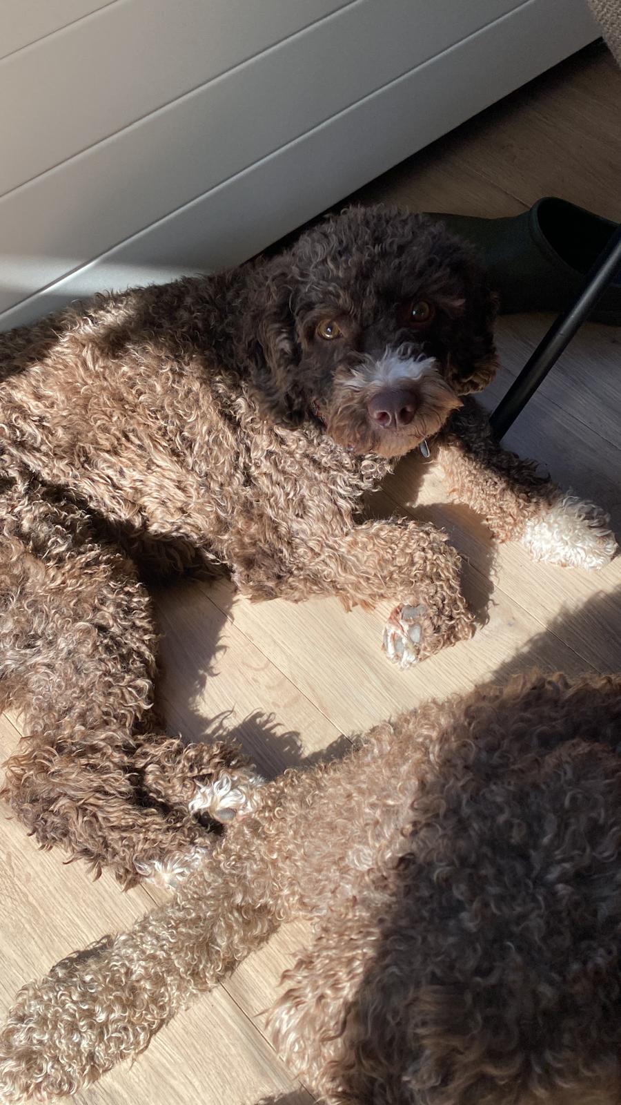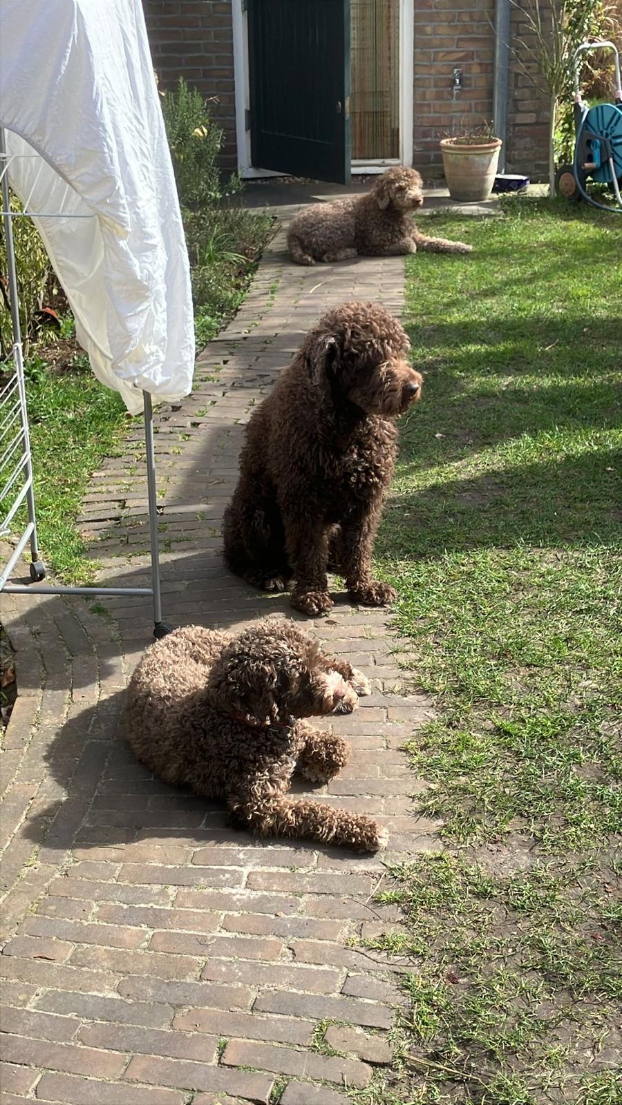 Nina verblijft in een opvanggezin waar ze samenwoont met twee andere waterhonden, de tekst is geschreven toen Nina ongeveer 1 maand bij hen was