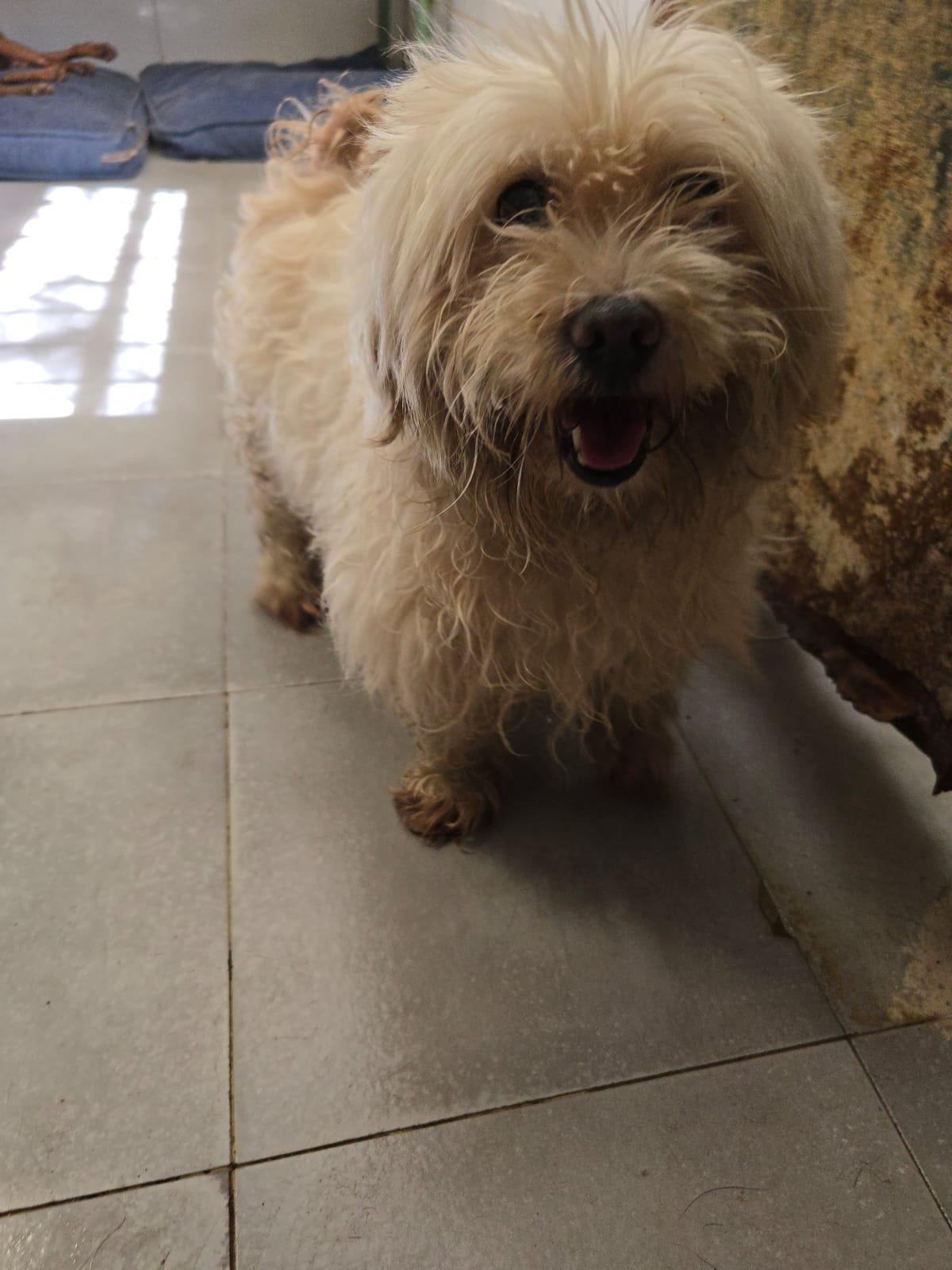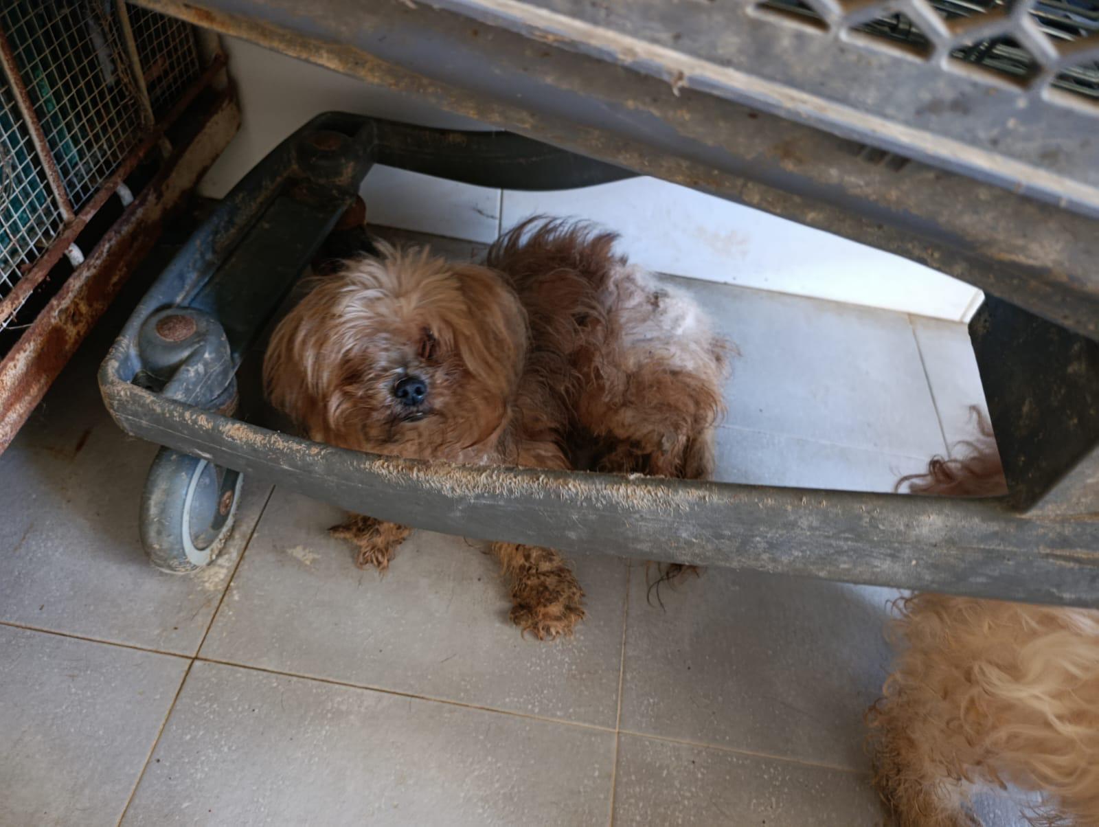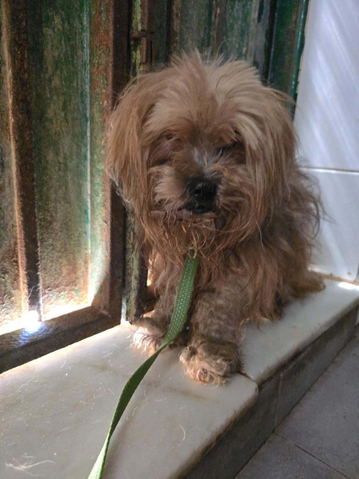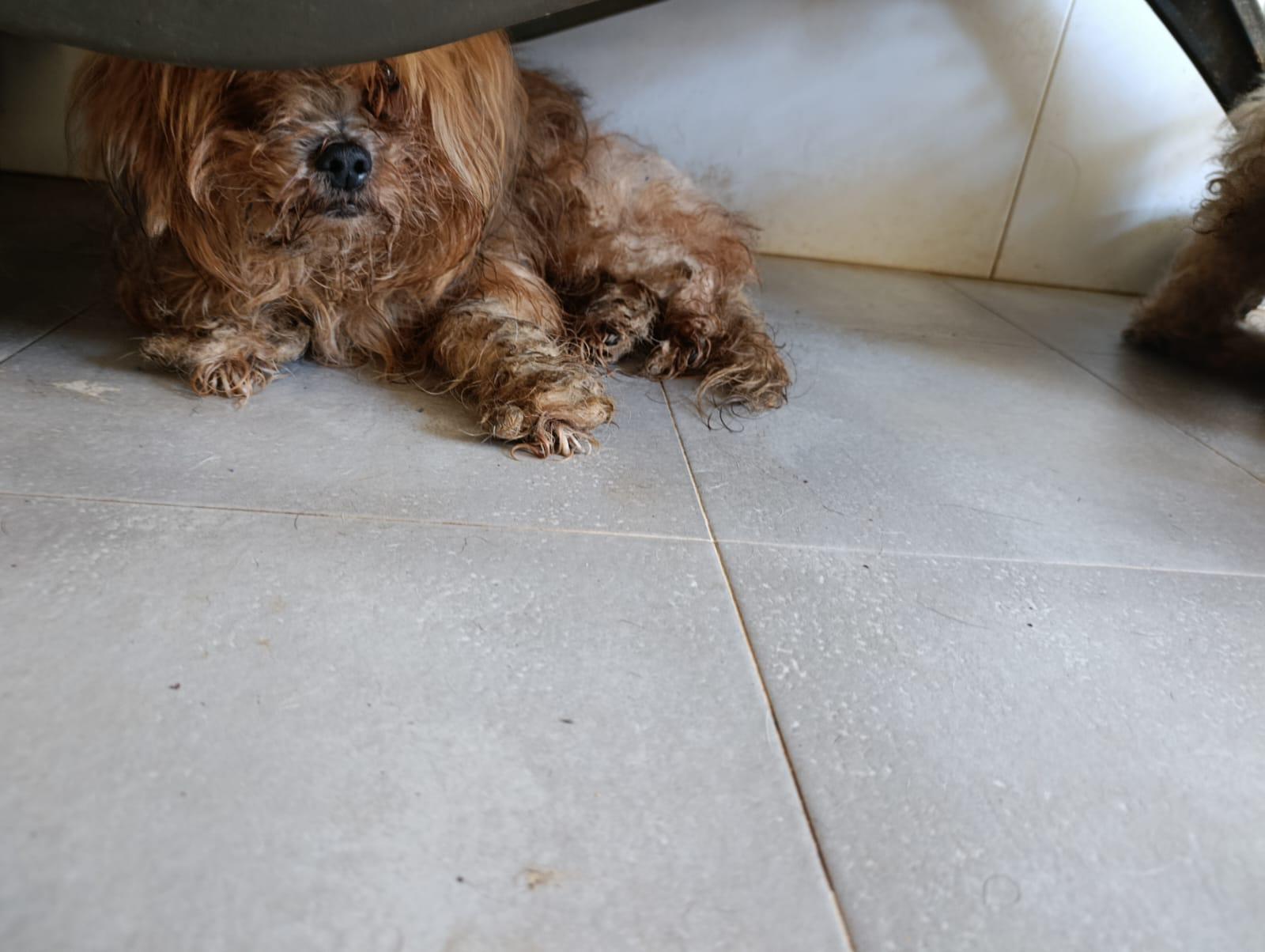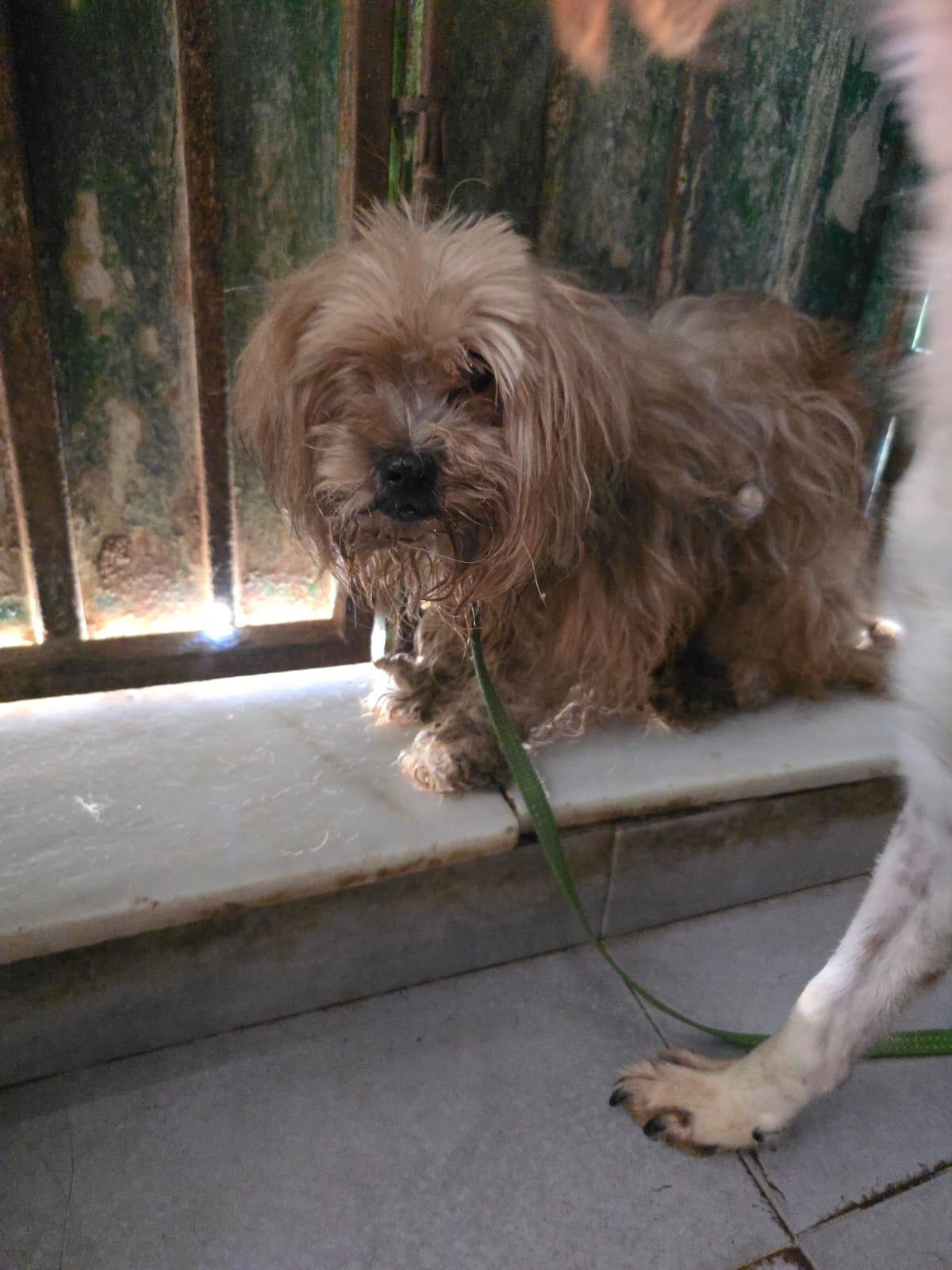 Rocky, een mooie bruine kruising Yorkshire terrier uit 2017, kwam samen met zijn maatje Duque bij de shelter terecht in september. Ze werden binnengebracht door de kleinzoon van een man die was overleden. Hij vertelde dat hij de twee honden had gevonden… maar al snel bleek dat ze gewoon van zijn opa waren. En in welke toestand ze waren, brak ons hart: vervilt, verwaarloosd, vies en duidelijk al lange tijd zonder goede zorg. In september hebben we ze gezien en we werden geraakt door dit aandoenlijke stel. Uiteraard horen ze niet in een overvolle shelter na jaren in een huis te hebben gewoond.