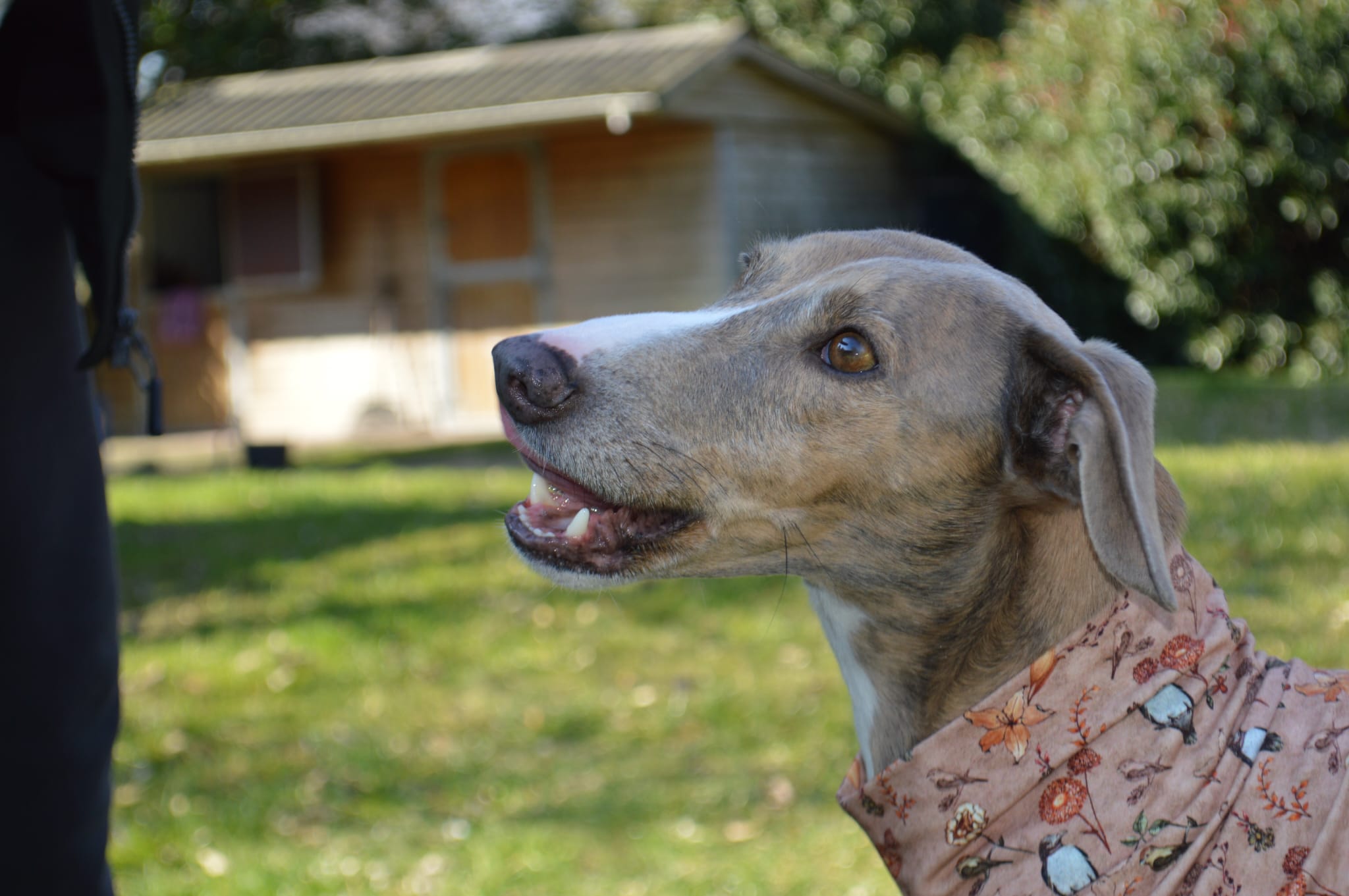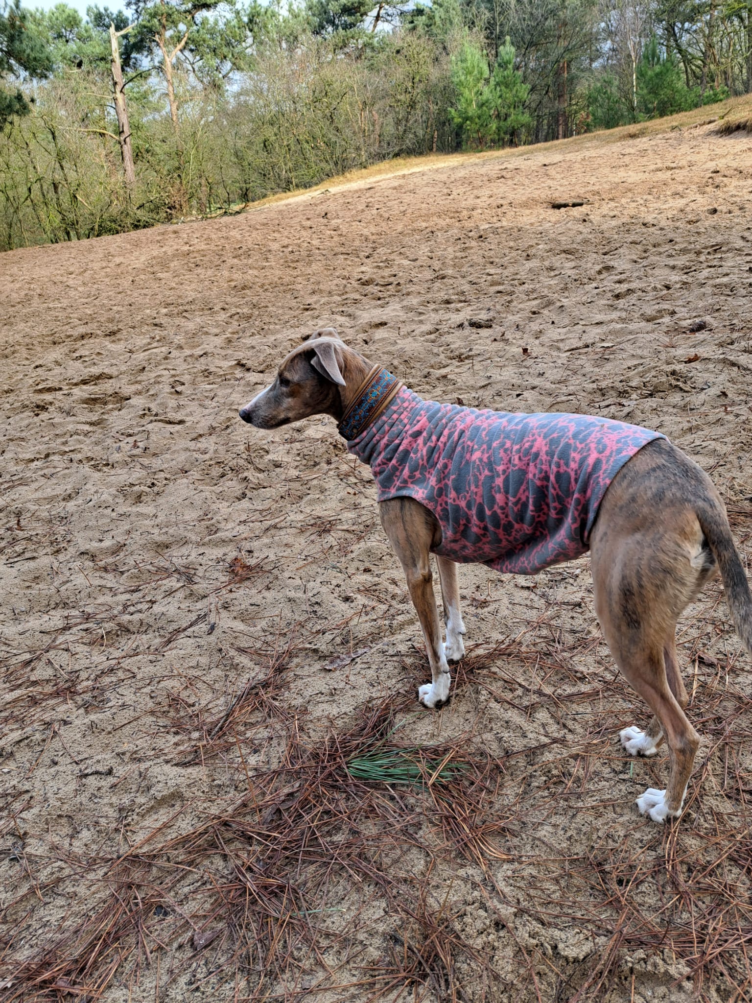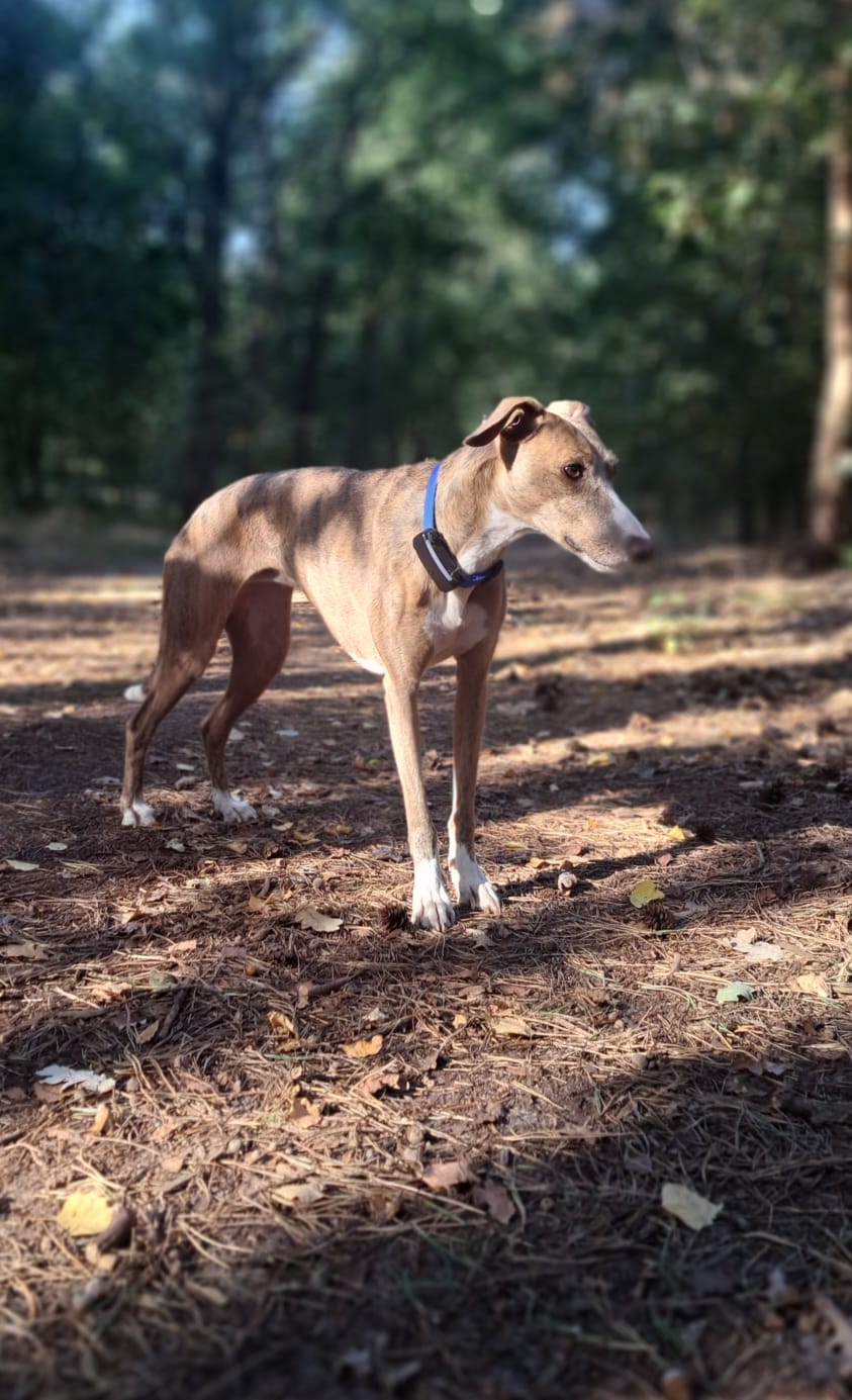 Semmie is een kleine windhond-mix..