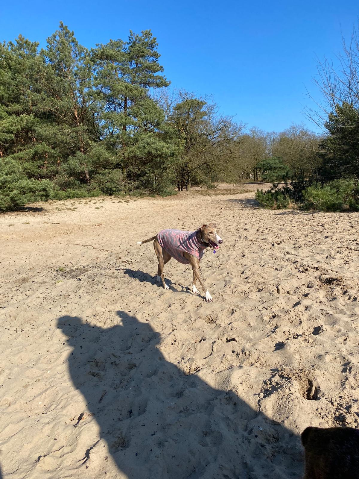 Semmie is zindelijk en wordt momenteel 4 keer per dag uitgelaten. Meegaan in de auto is geen probleem. Er is sprake van jachtinstinct. Ze kan in een veilig gebied loslopen, een GPS tracker wordt geadviseerd.