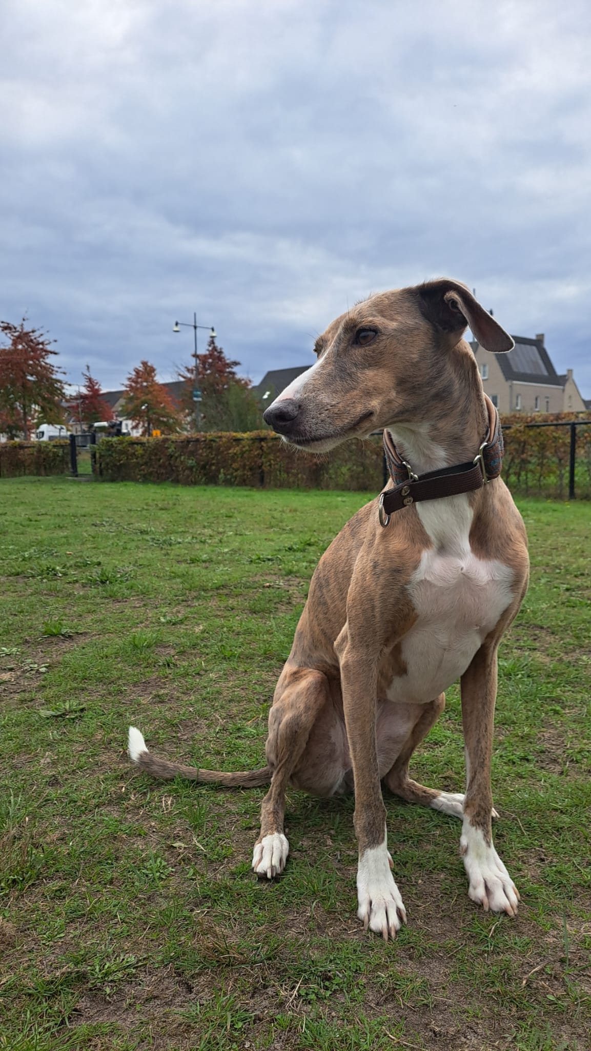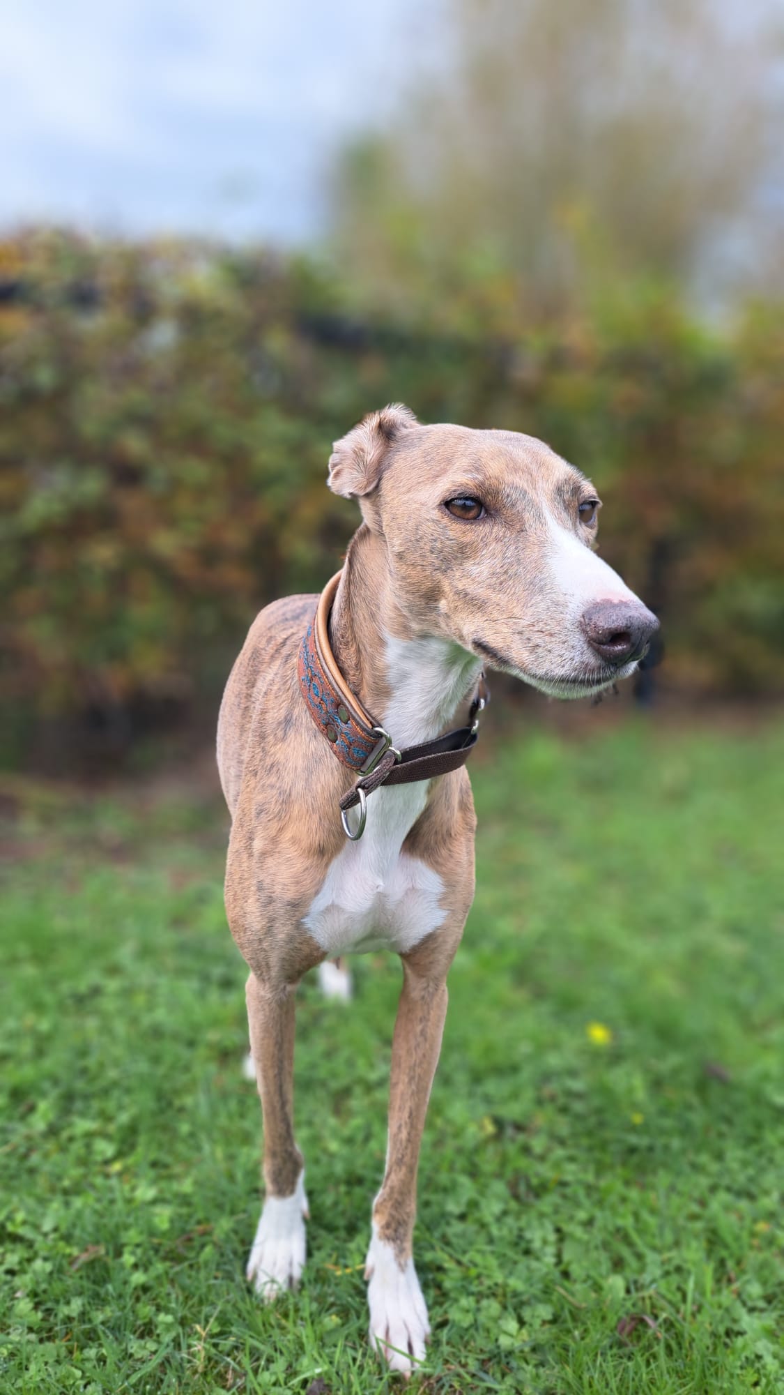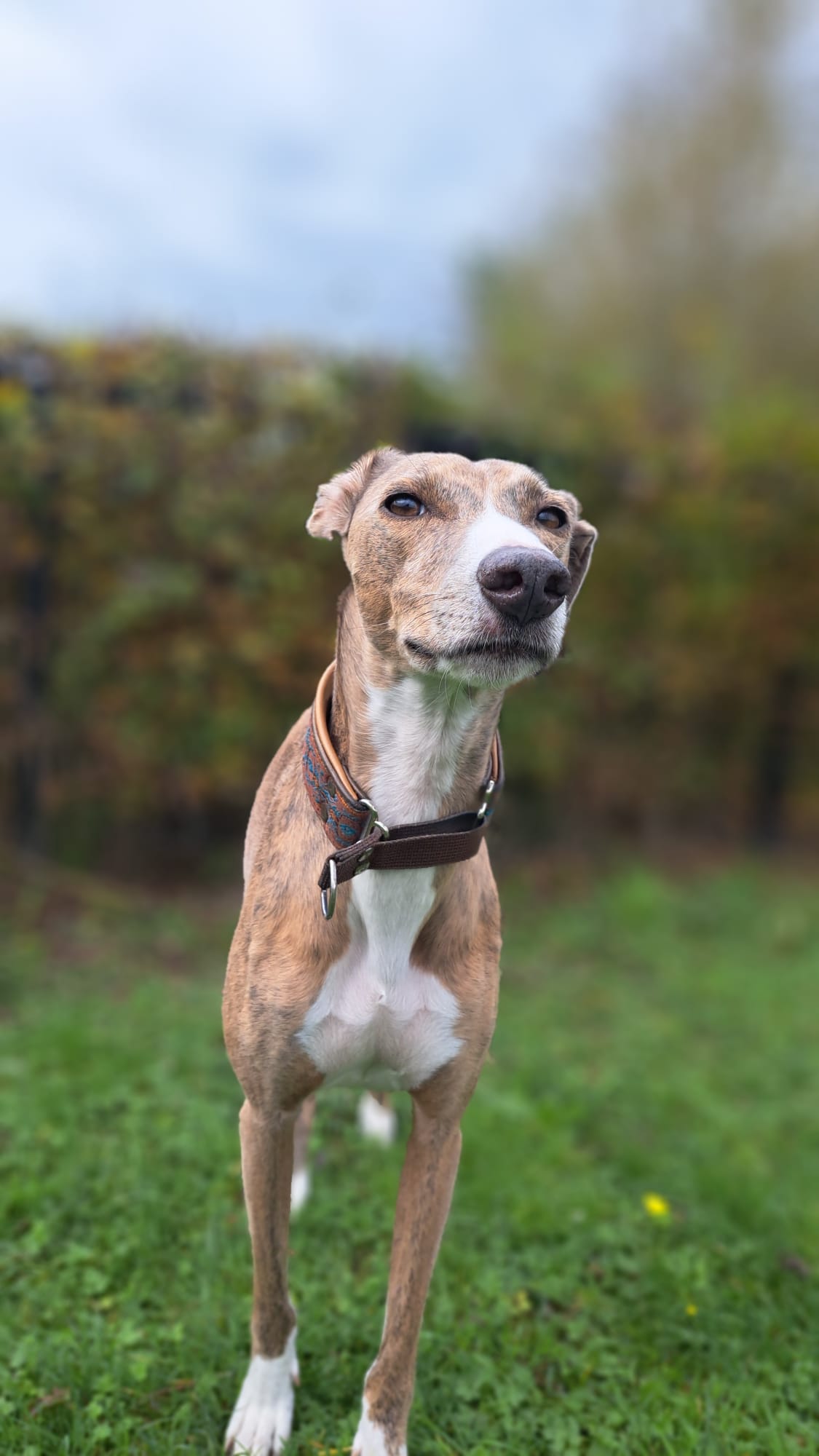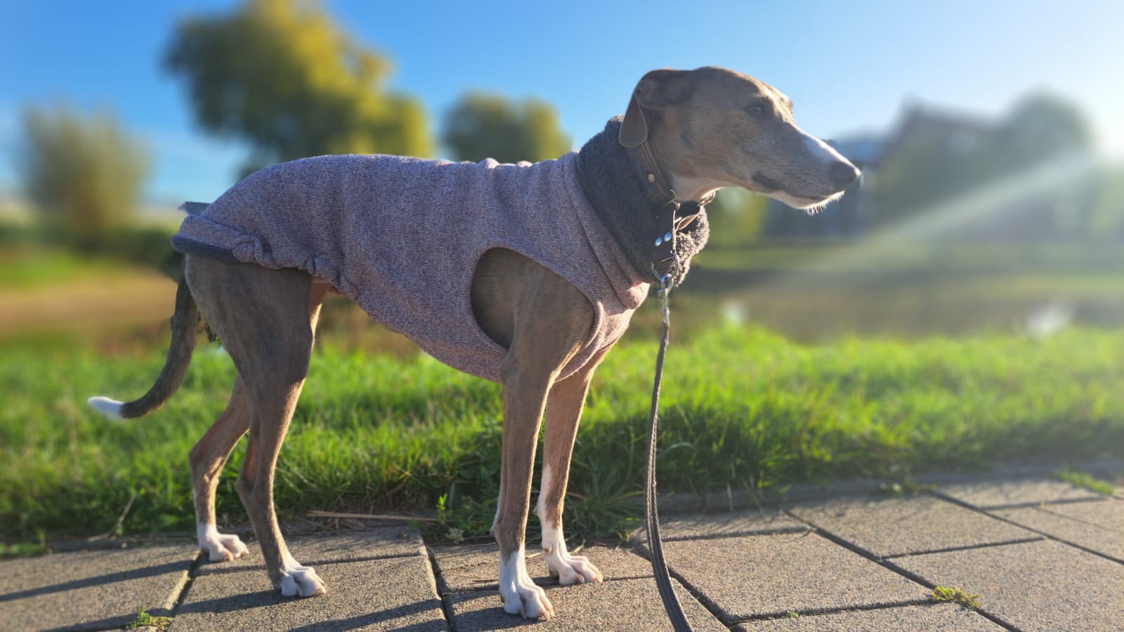 Semmie is een kleine, elegante hond met een sierlijk postuur dat doet denken aan een Whippet. Compact van formaat, maar met een groot hart en een levendig karakter
