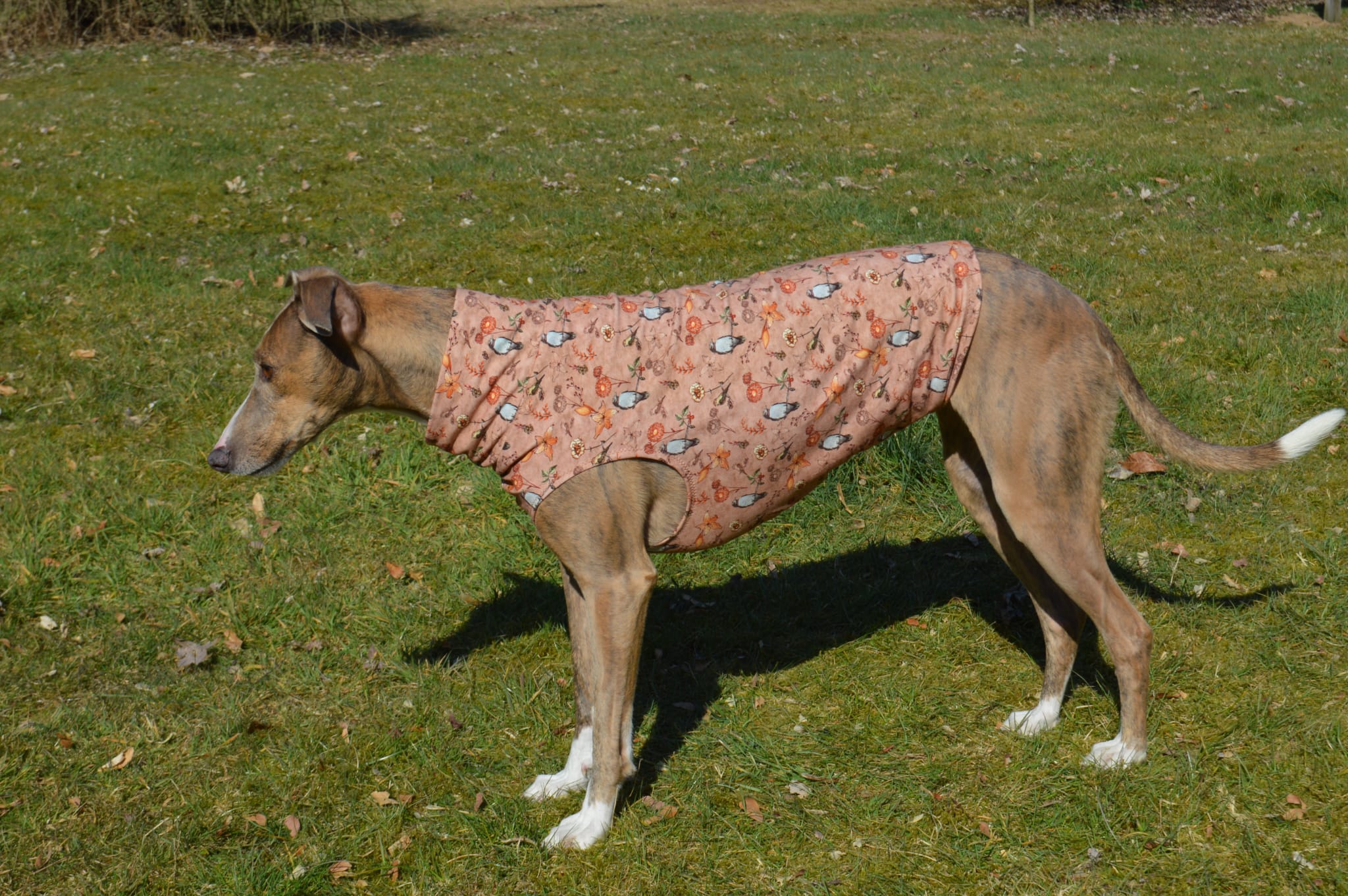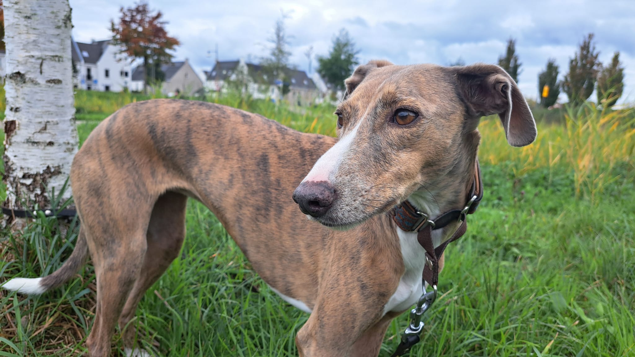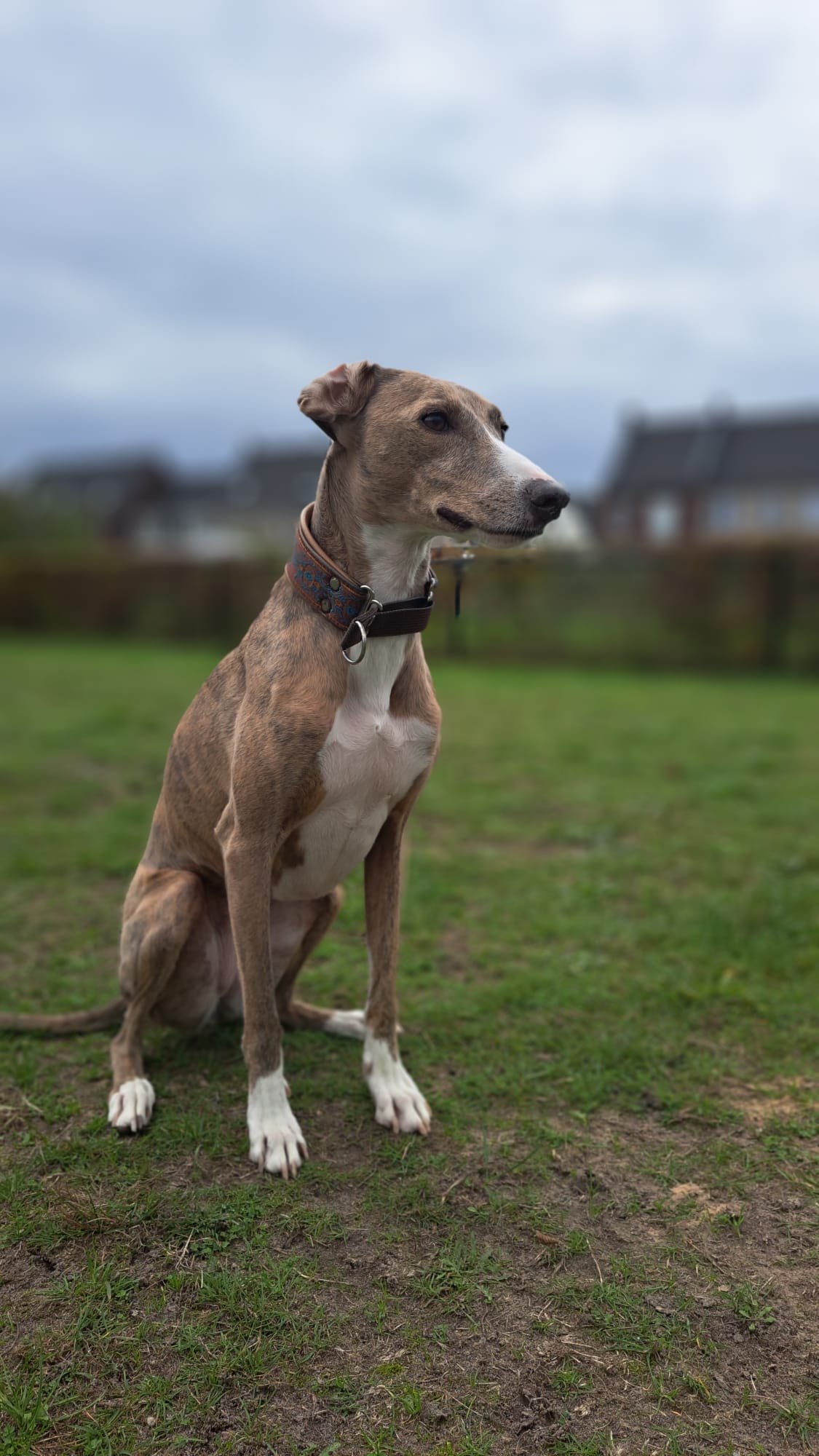Semmie is een kleine, elegante hond met een sierlijk postuur dat doet denken aan een Whippet. Compact van formaat, maar met een groot hart en een levendig karakter