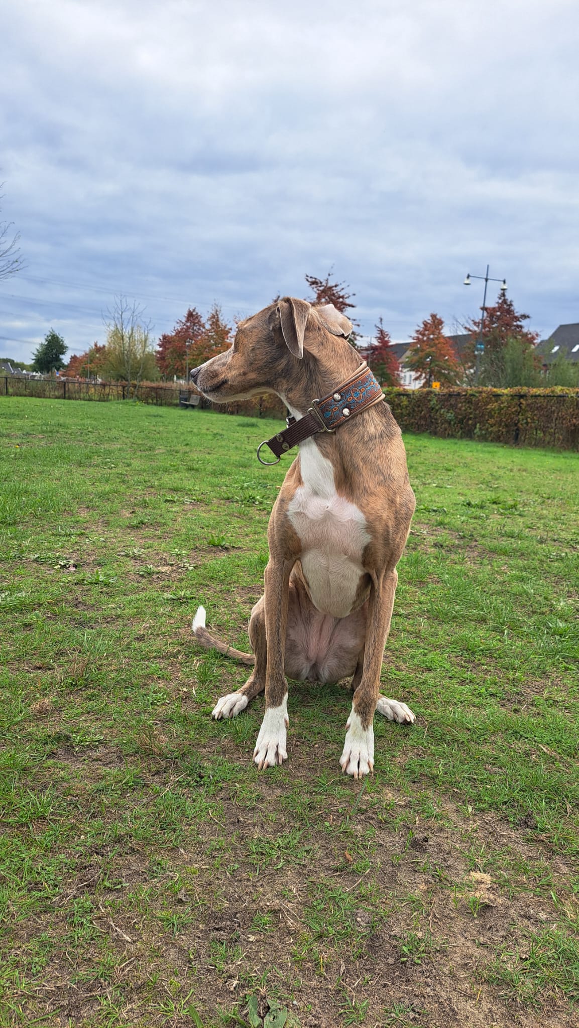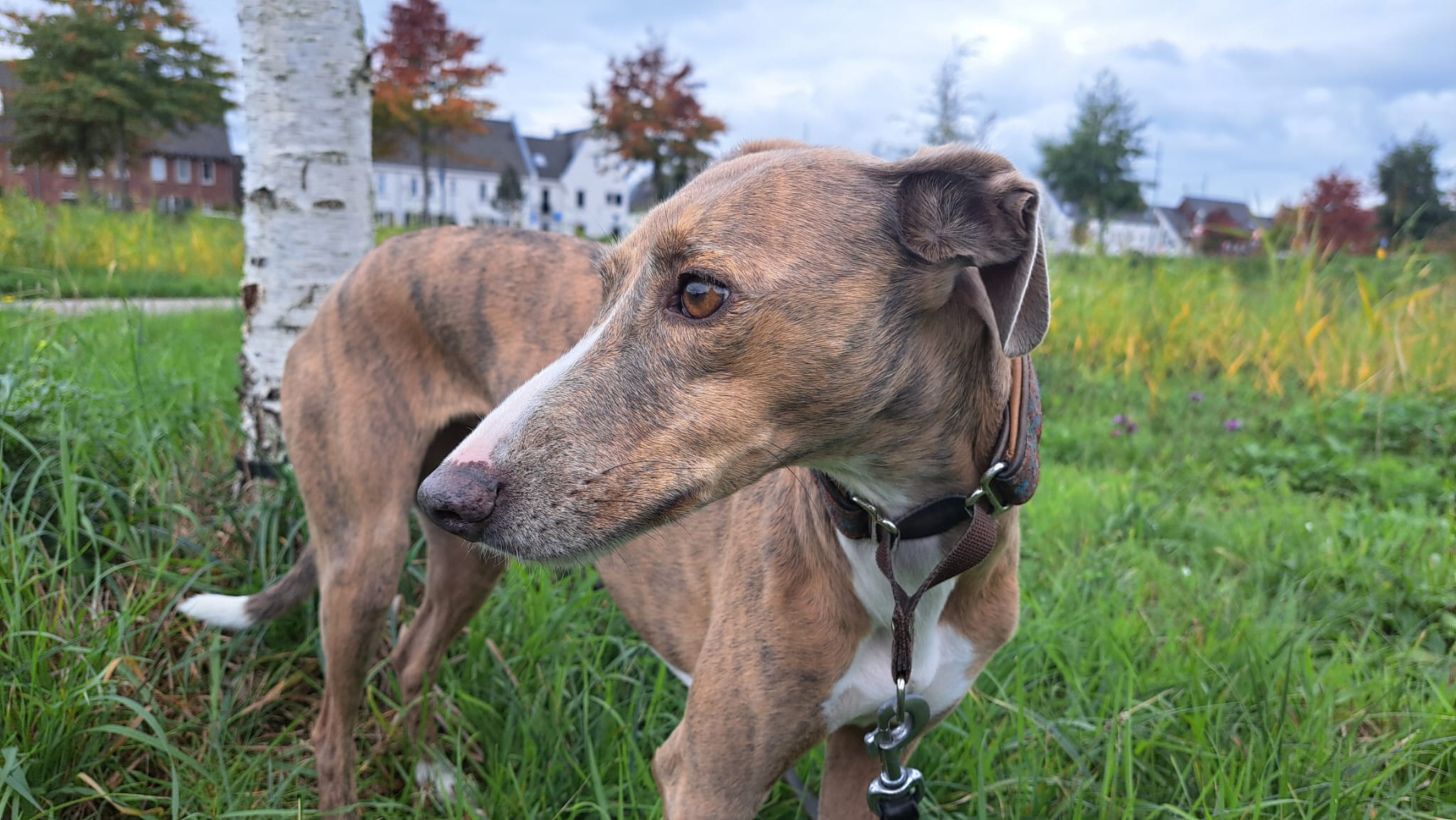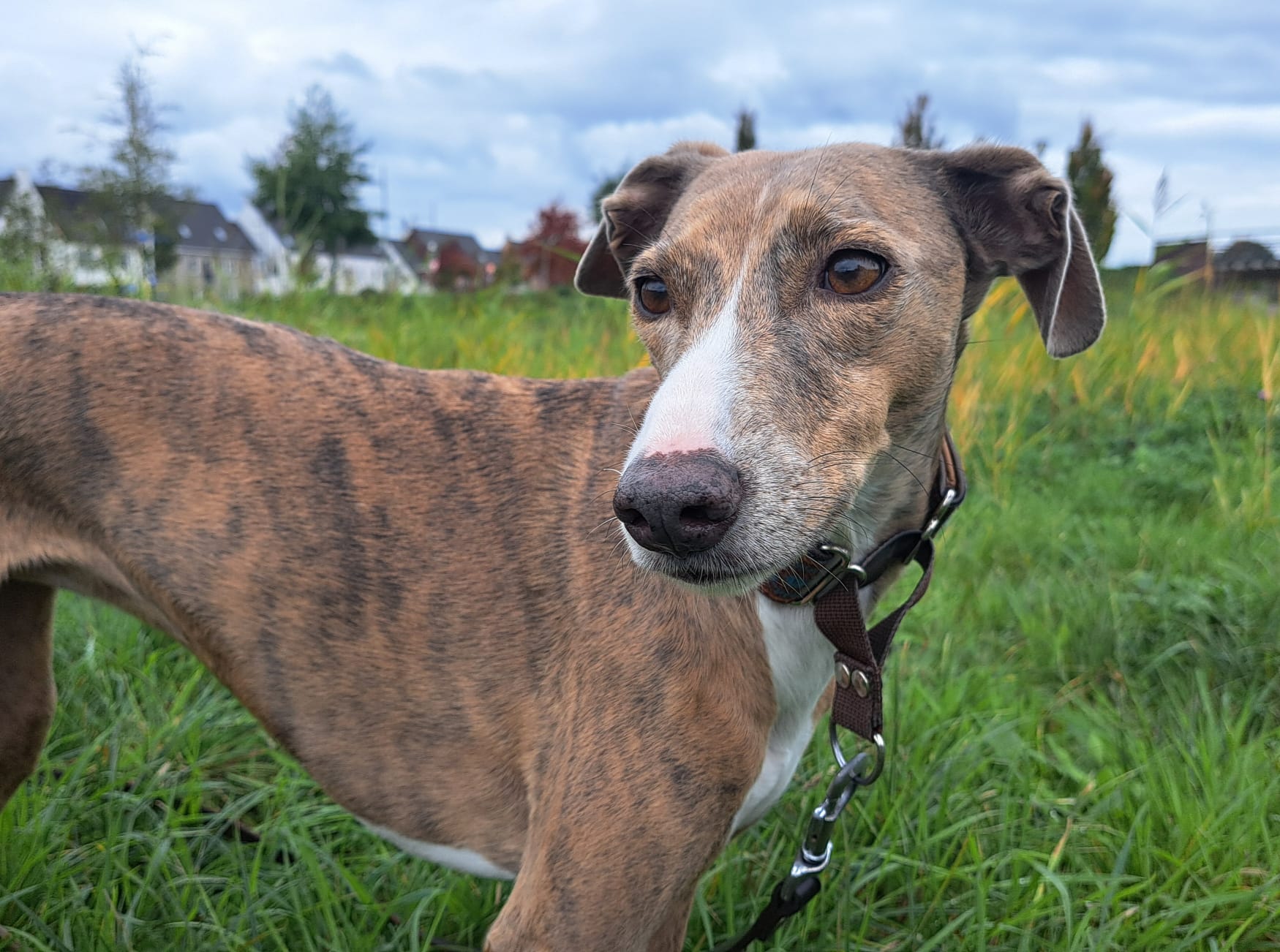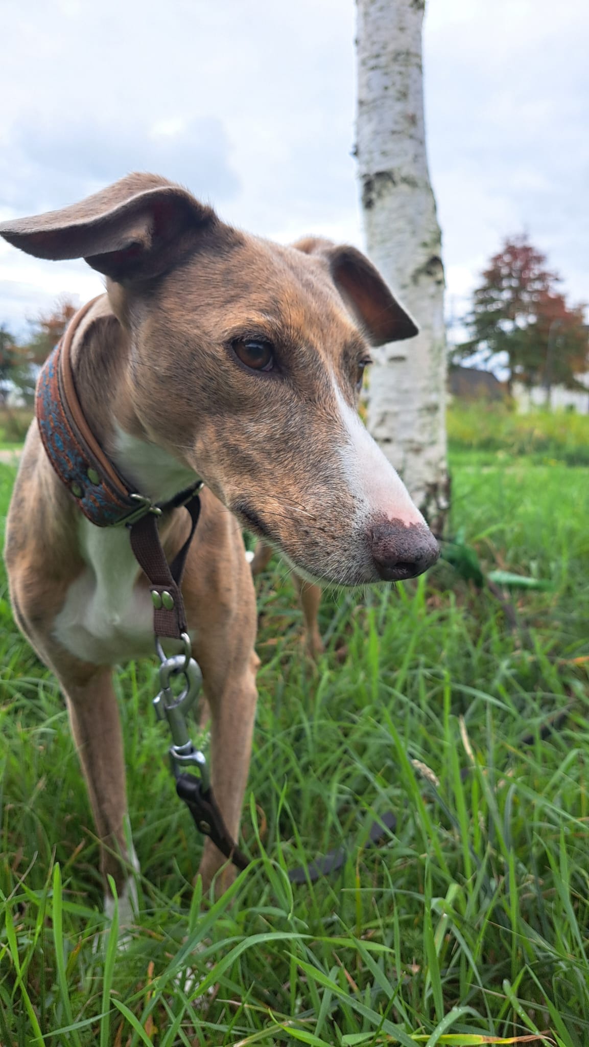 Semmie is een kleine, elegante hond met een sierlijk postuur dat doet denken aan een Whippet. Compact van formaat, maar met een groot hart en een levendig karakter