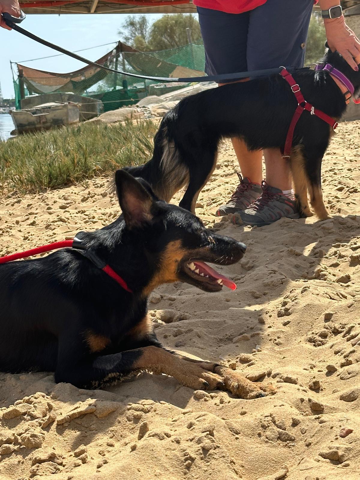Toen we in september 2025 op werkbezoek waren bij Puntanimals namen we Ember en Sparky mee voor een wandeling. Dat is altijd een hele belevenis voor de honden. Lekker naar buiten, geurtjes en naar het strandje bij de shelter. Ze genoten zichtbaar.